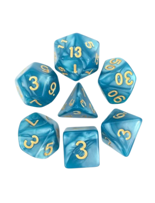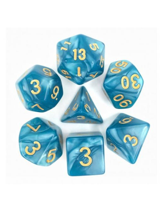 Lot de 7 dés Bleu Nacré et Or FR Ludistri