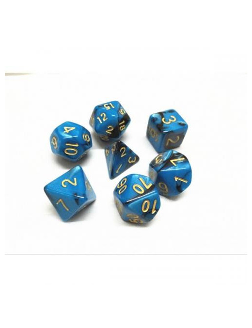 Lot de 7 dés Fusion Bleu et Noir FR Ludistri