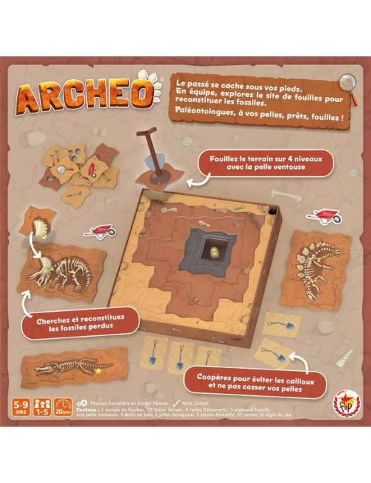 Coopérez pour découvrir les vestiges du passé avec votre pelle-ventouse. Creusez sur 4 niveaux, reconstituez vos découvertes et tentez dobtenir 10 étoiles. Mais attention, débarrassez-vous de vos cailloux avant quils ne cassent votre pelle. A vos pelles, prêts ? Fouillez !