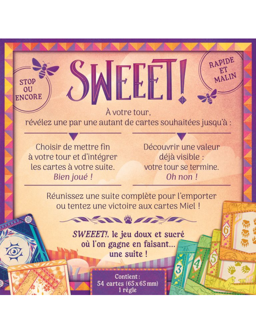 A votre tour, révélez une par une, autant de cartes souhaitées jusquà : - Découvrir une valeur déjà visible : Oh non, votre tour se termine ! - Choisir de mettre fin à votre tour et dintégrer les cartes à votre suite Réunissez une suite complète pour lemporter ou tenter une victoire au miel ! Le jeu repose sur la prise de risque et l'observation. Soyez le premier à récupérer les 8 cartes qui résument la vie de l'Ours durant les saison chaude. Pour les Ours les plus gourmands, une victoire instantannée est possible à la découverte des 4 cartes Miel !