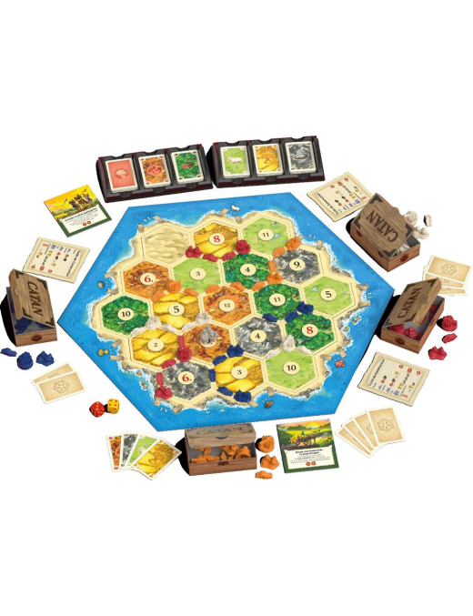 CATAN le Jeu de Base : explorez l'île de CATAN : découvrez des territoires riches en ressources, commercez, construisez des routes et fondez des villes. Mais dautres explorateurs cherchent également à sapproprier les meilleures terres Un classique du jeu de plateau adopté par des millions de joueurs depuis 30 ans, dans une version modernisée.