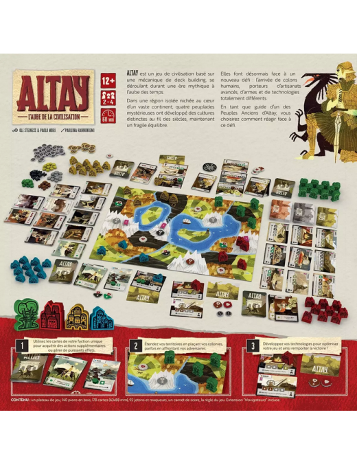 ALTAY est un jeu de deck-building épique, simple daccès mais à la profondeur tactique qui vous plongera à laube dune nouvelle civilisation !