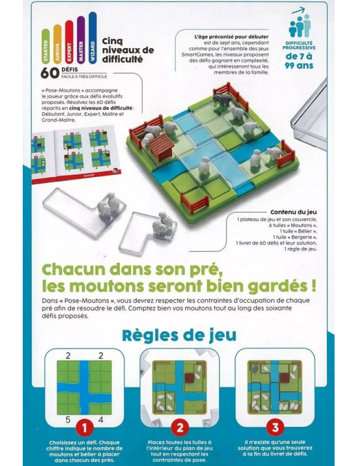 Pose Moutons : Chacun Dans Son Pré ! est un jeu de logique et de déduction conçu pour un joueur, proposant 60 défis de difficulté croissante.