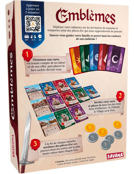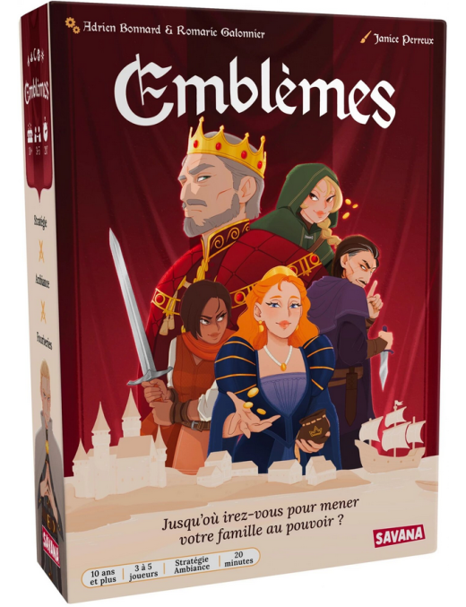Le roi est mort et, sans héritier, le trône devient lobjet de toutes les convoitises ! Alors que le royaume sombre dans lincertitude, les familles des contrées voisines sapprêtent à se disputer les trois lieux dinfluence qui les rapprocheront du pouvoir : le Château, le Village et le Port. Saurez-vous guider votre famille et porter haut les couleurs de son emblème ?