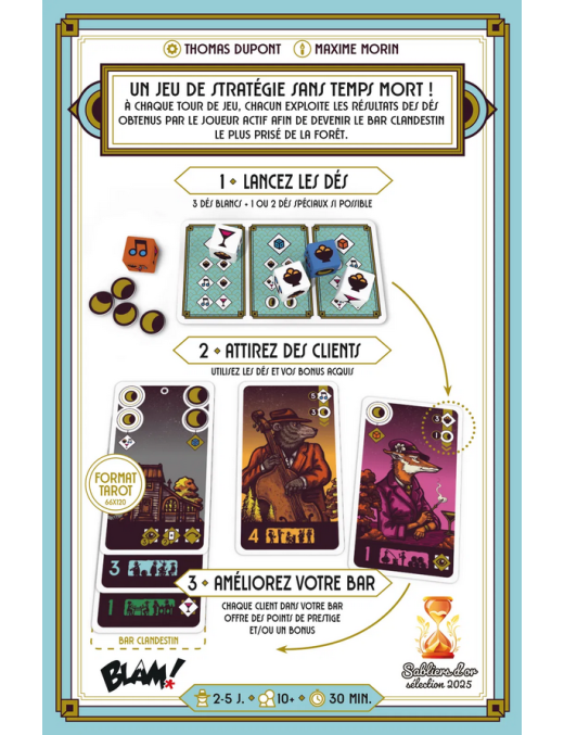 Plongez dans l'univers secret de la prohibition... A la tête d'un bar clandestin, tirez parti au mieux du partage des ressources interdites afin d'attirer des clients au pouvoir d'influence bien utile. Faites les meilleurs choix pour prospérer dans l'ombre et devenir l'adresse cachée la plus prisée de la forêt !