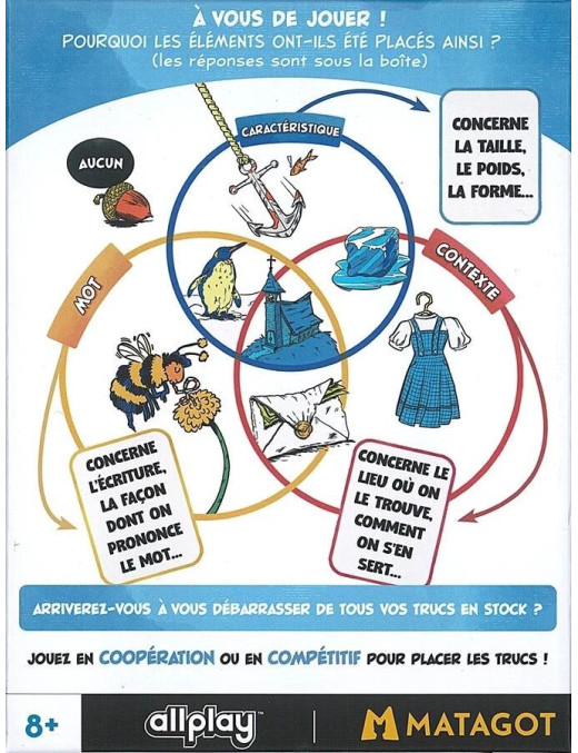 Trois anneaux sont placés au centre de la table. Chacun possède une règle secrète, que seul le Guide connaît. Ces règles peuvent porter sur les caractéristiques physiques des objets (taille, forme, matière), sur la manière dont on les écrit ou les prononce, ou encore sur le contexte dans lequel on les utilise ou les trouve. À partir dun ensemble de cartes illustrées représentant une grande variété de "trucs", les autres joueurs les Chercheurs doivent, tour à tour ou ensemble, essayer de déduire à quelles règles obéissent les anneaux, en plaçant les objets au bon endroit.
