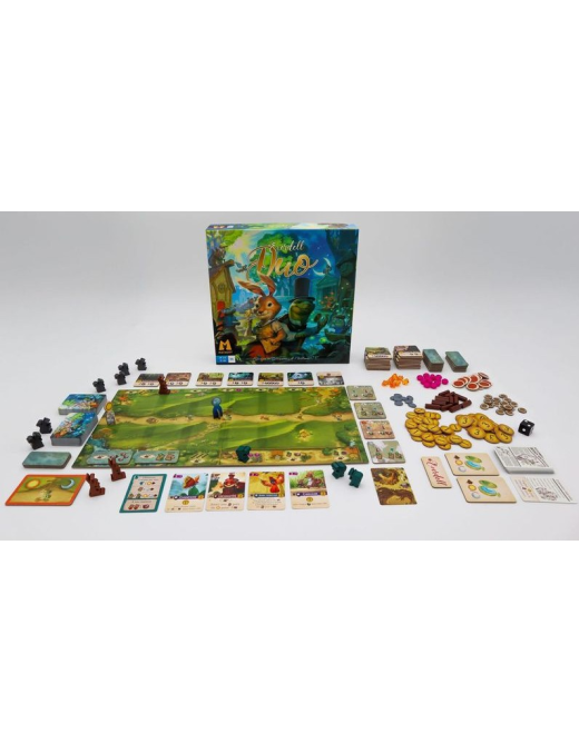 Dans Everdell Duo, vous pouvez affronter votre adversaire ou jouer en coopération pour gagner le plus de points. Pour ce faire, placez des ouvriers pour collecter des ressources, puis utilisez ces ressources pour poser des cartes face visible devant vous, créant ainsi votre propre cité forestière.