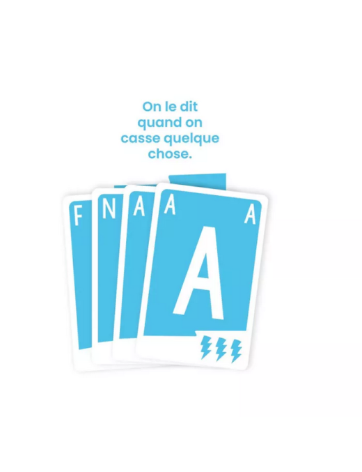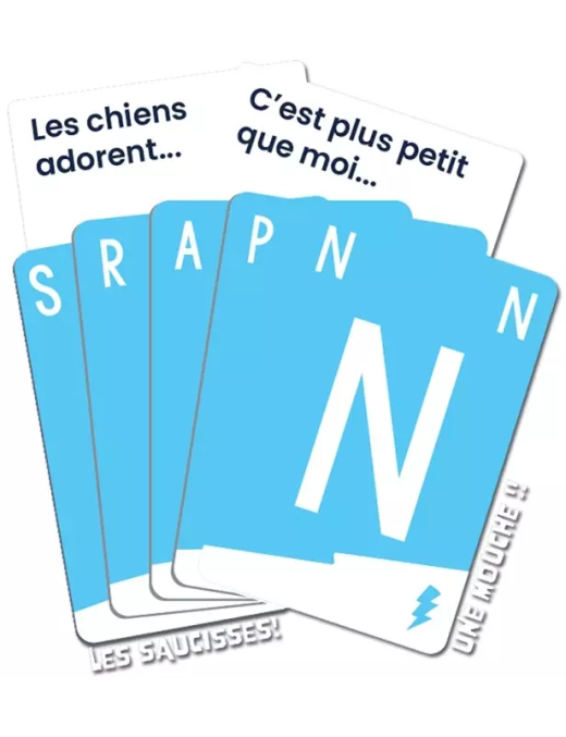 Débarrassez-vous de vos lettres en répondant plus vite que les autres à des thèmes rigolos et adaptés aux petits comme aux grands (Un animal rigolo, Une couleur dans un arc-en-ciel, Un métier rigolo). Stimule l'imagination et la réflexion ! Parfait pour jouer en famille ou avec les copains. Règles expliquées en 1 minute !