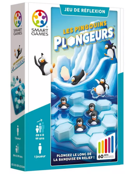 Les Pingouins Plongeurs vous propose 60 défis évolutifs, le matériel en 3D et la thématique des pingouins sympathiques en font un jeu ludique, et logique. Son coffret de rangement le rend idéal pour les voyages.